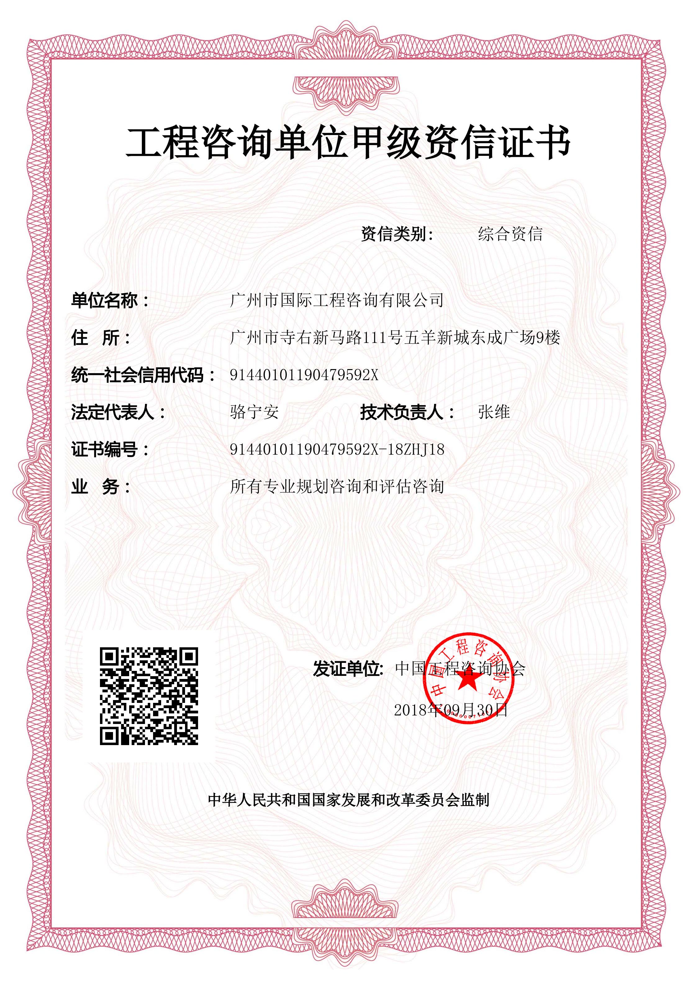 工(gōng)程咨詢單位甲級資信(綜合資信)