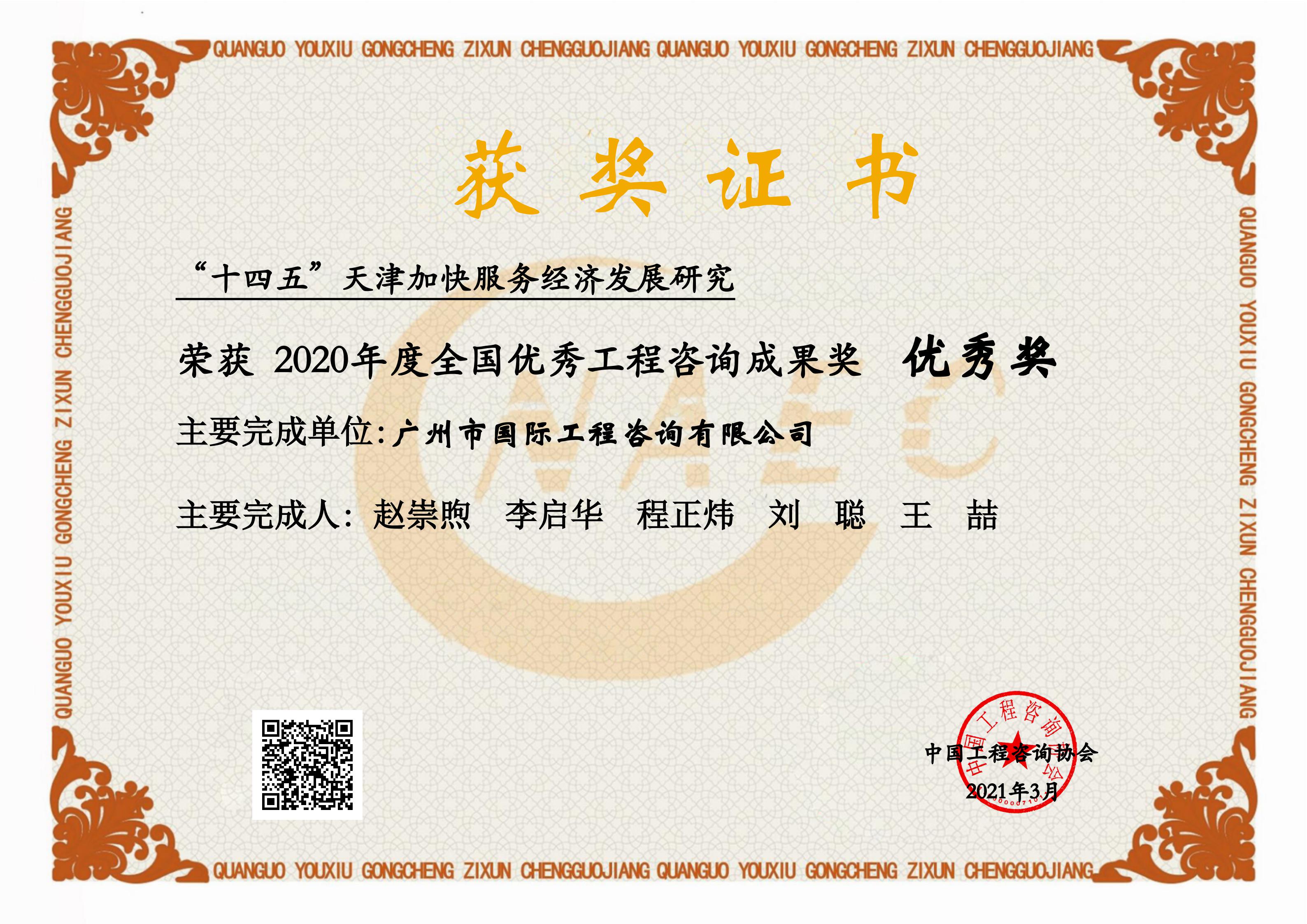 2020年(nián)度全國(guó)優秀工(gōng)程咨詢成果獎優秀獎(“十四五”天津加快服...