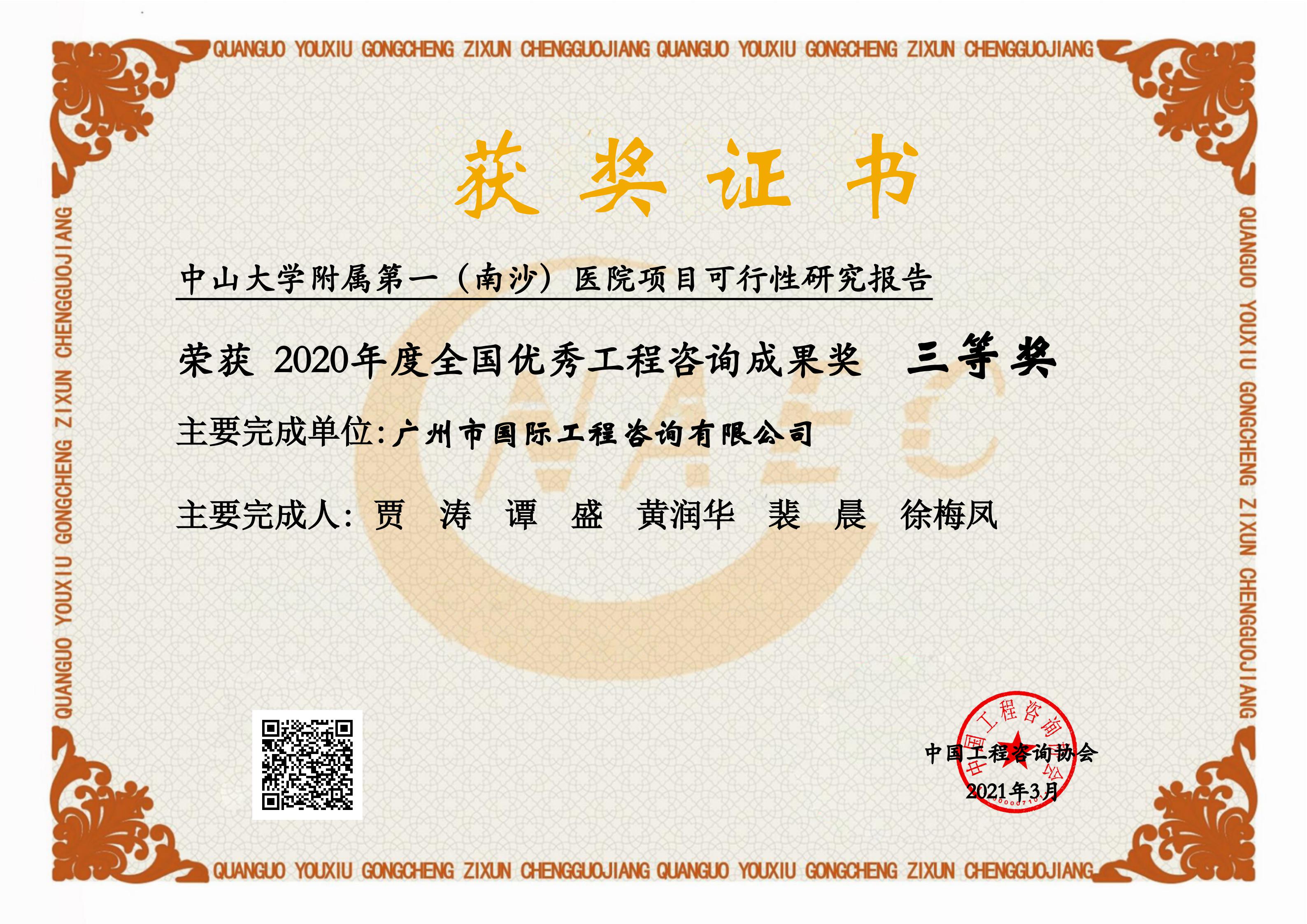 2020年(nián)度全國(guó)優秀工(gōng)程咨詢成果獎三等獎(中山大學附屬第一(yī)(南(nán)...