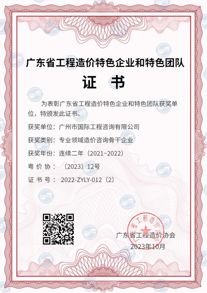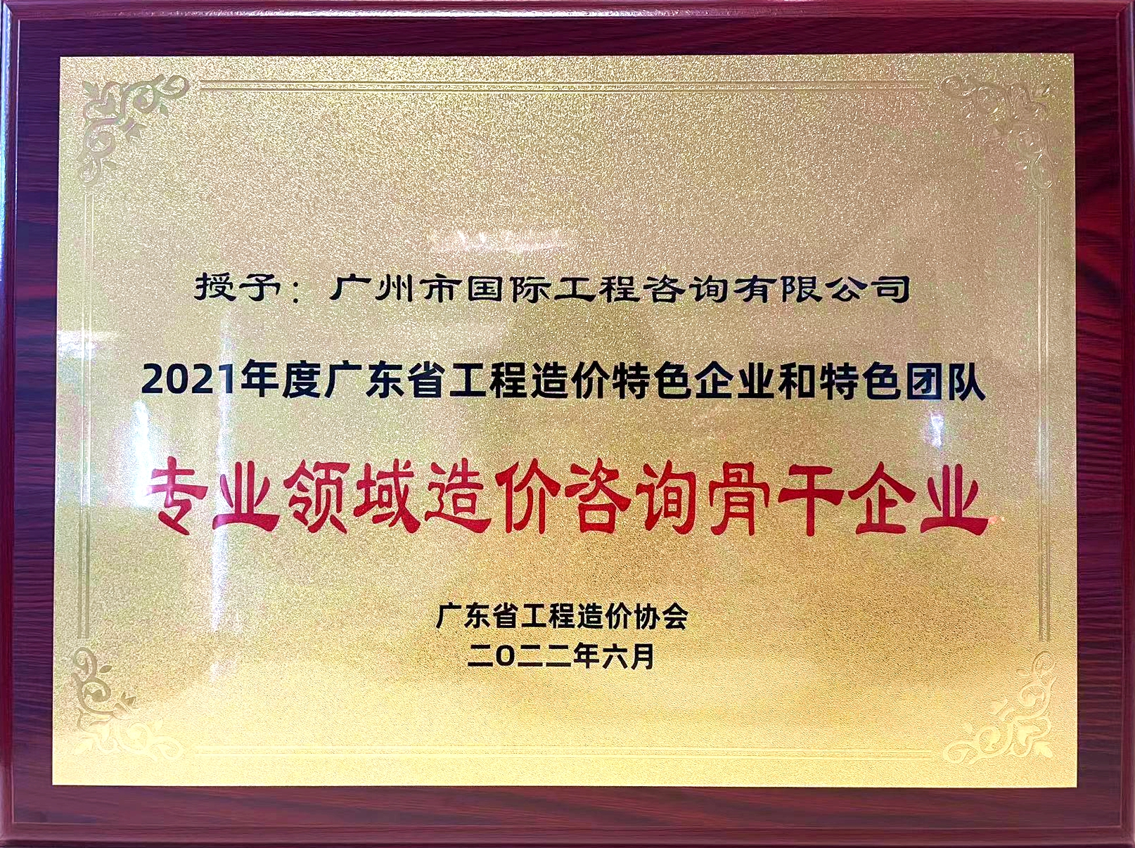 2021-2022年(nián)度廣東省專業(yè)領域造價咨詢骨幹企業(yè)(連續二年(nián))
