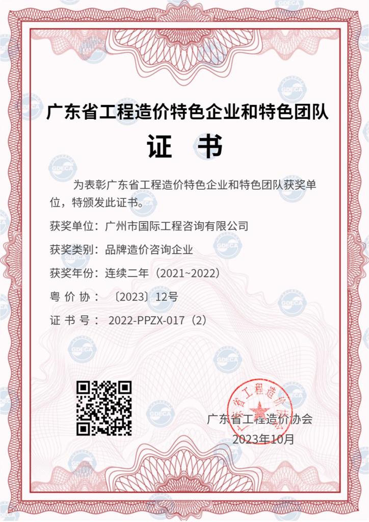 2021-2022年(nián)度廣東省品牌造價咨詢企業(yè)(連續二年(nián))
