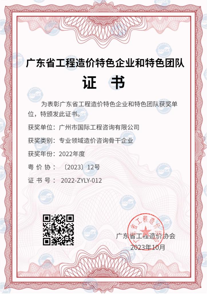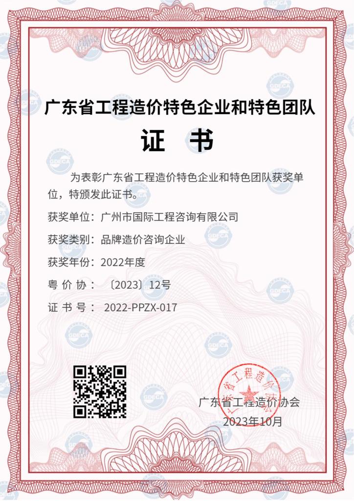 2022年(nián)度廣東省品牌造價咨詢企業(yè)證書