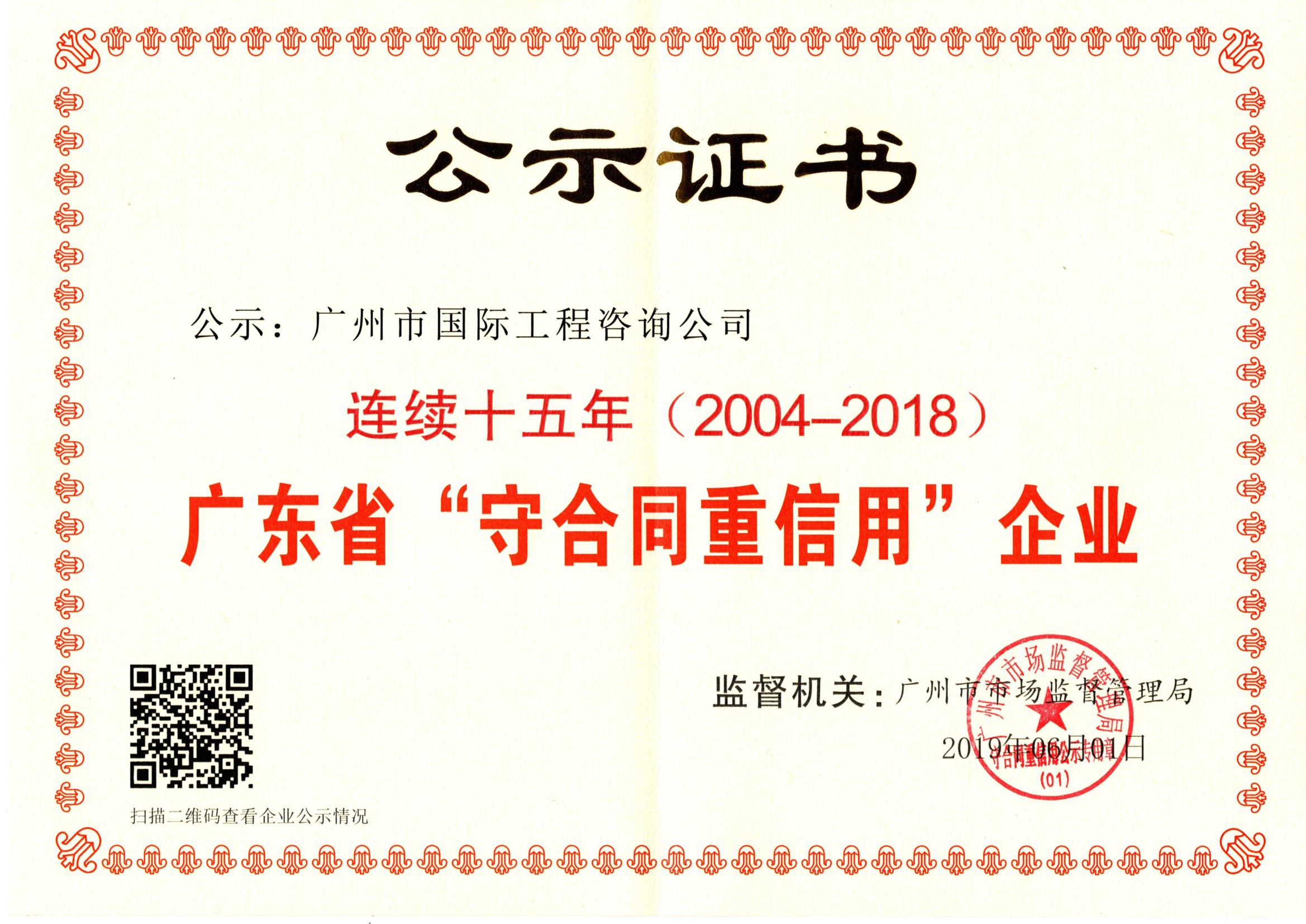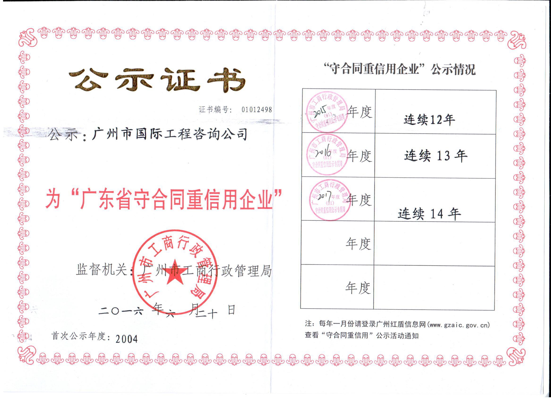 2020年(nián)廣州市(shì)守合同重信用證書( 連續16年(nián))