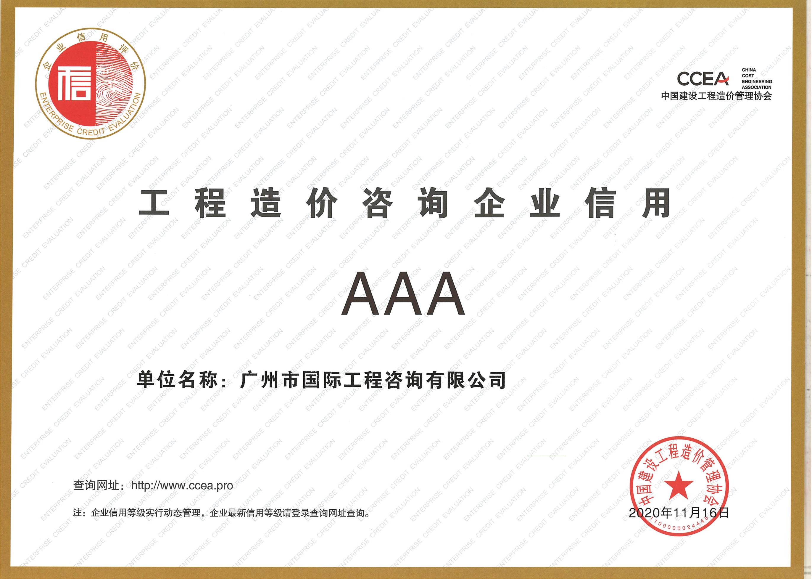 2020工(gōng)程造價咨詢企業(yè)信用AAA等級