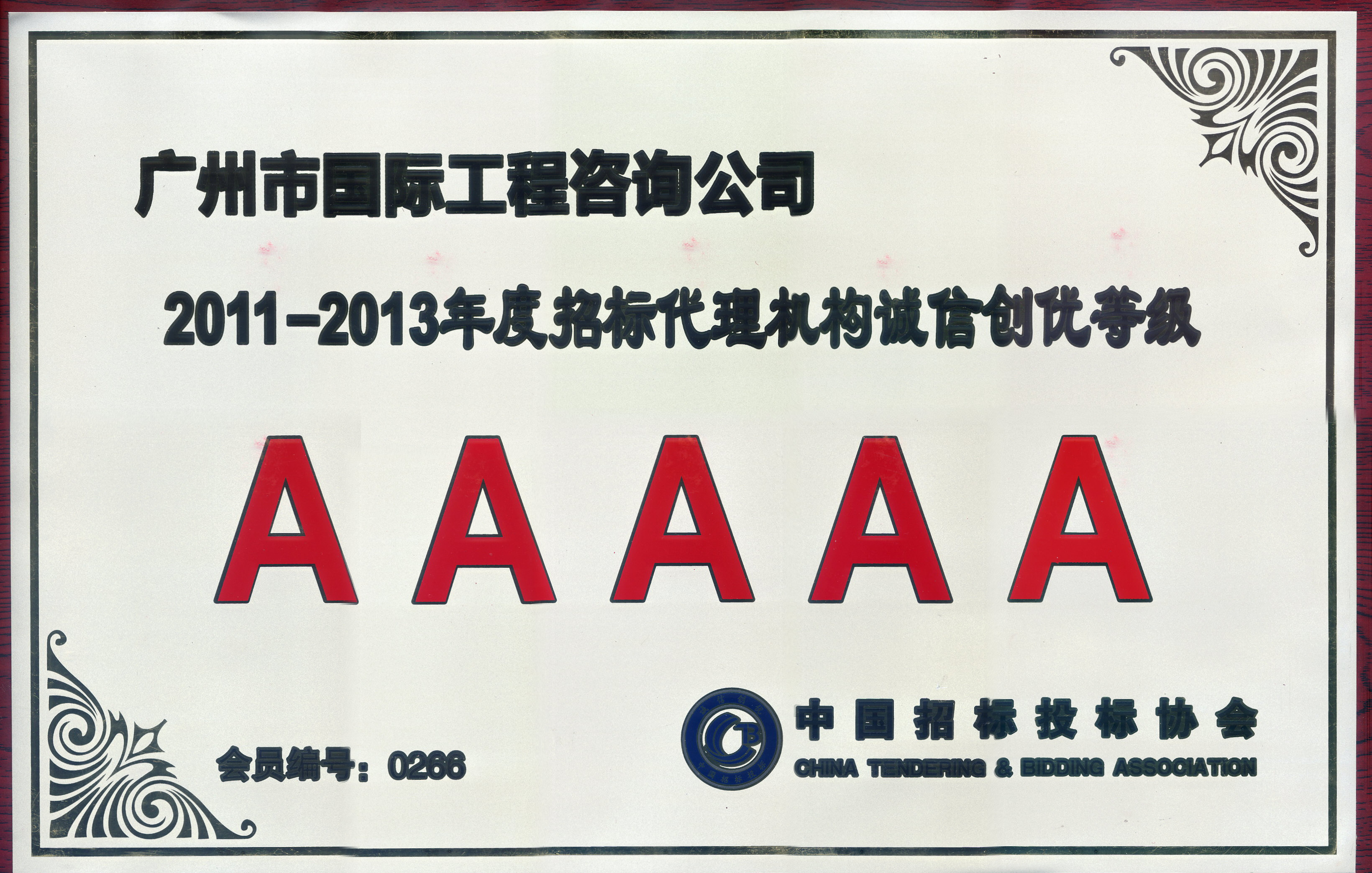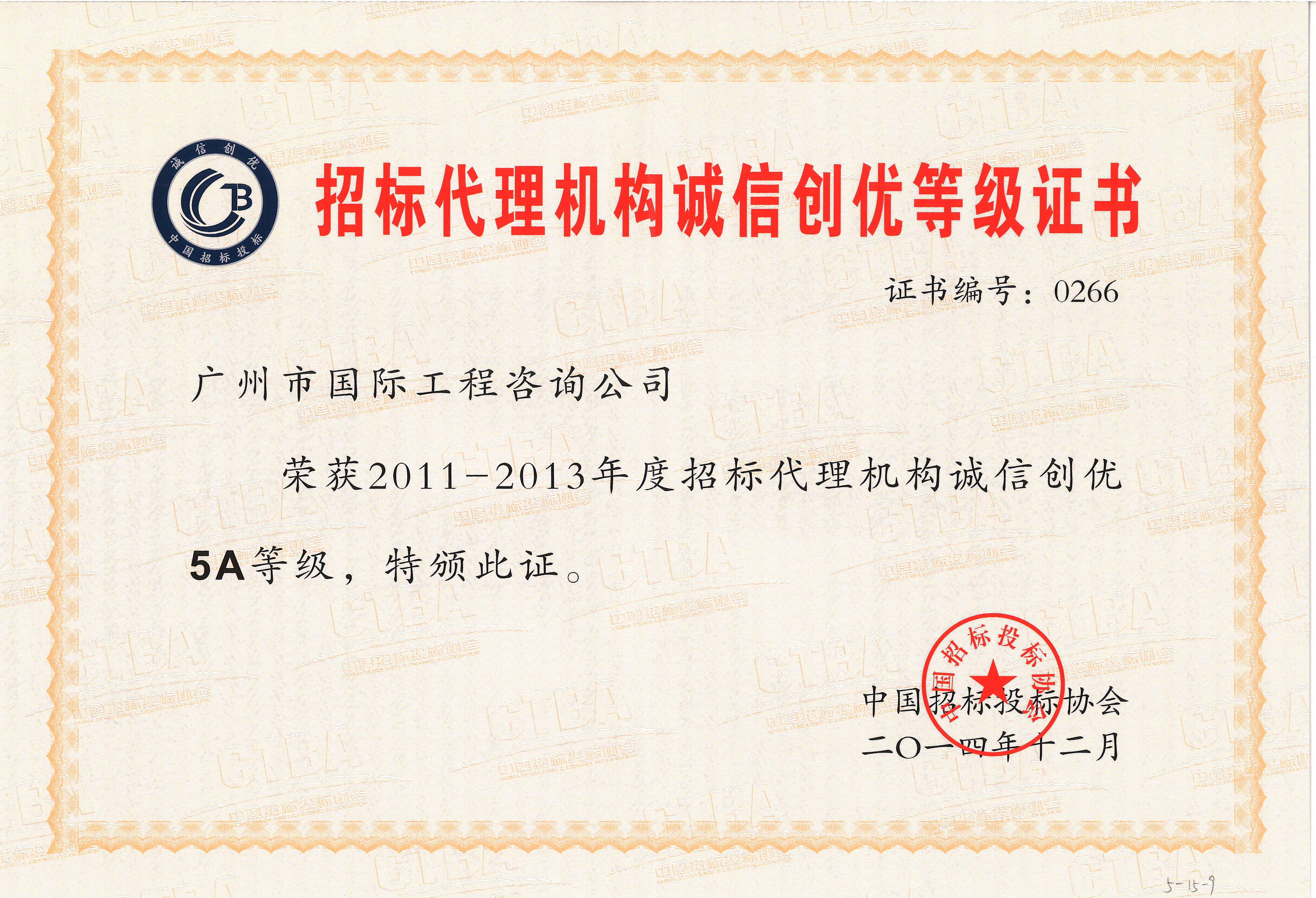 2011-2013年(nián)度招标代理機(jī)構誠信創優5A等級