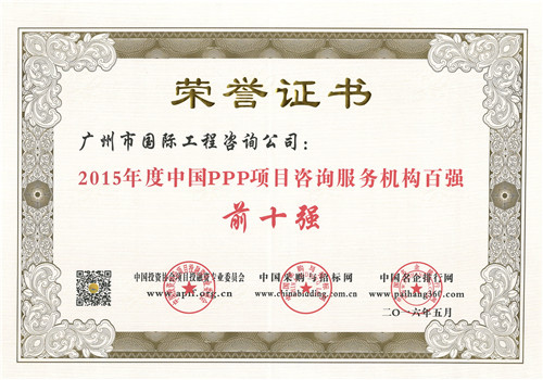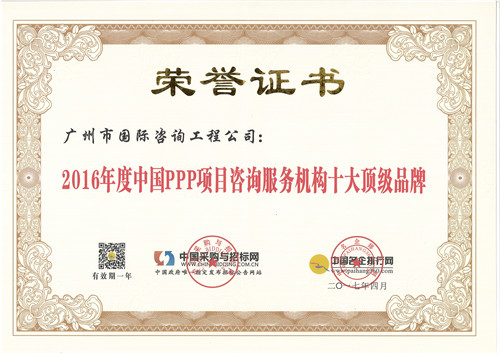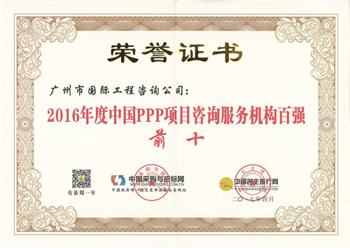 2016年(nián)度中國(guó)PPP項目咨詢服務機(jī)構十大頂級品...