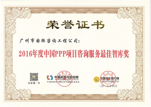 2016年(nián)度中國(guó)PPP項目咨詢服務最佳智庫獎