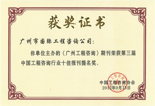 《廣州工(gōng)程咨詢》獲2012年(nián)第三屆中國(guó)工(gōng)程咨詢行...