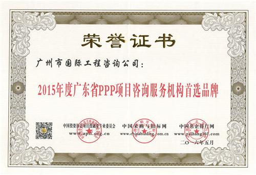 2015年(nián)度廣東省PPP項目咨詢服務機(jī)構首選品牌