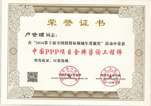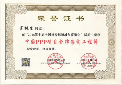 為(wèi)在PPP咨詢行業(yè)内樹立标杆企業(yè),國(guó)家發改委中國(guó)投資協會(huì)項目投融資專業(yè)委員(yuán)會(huì)、中國(guó)采購與招标網、中國(guó)名企排行網聯合主辦了“第10、11屆PPP咨詢服務機(jī)構評價推薦”活動。秉承“公開(kāi)、公平、公正、誠實信用”的原則,最終遴選出年(nián)度中國(guó)PPP咨詢服務機(jī)構類大獎。在活動中,廣州市(shì)國(guó)際工(gōng)程咨詢公司榮獲“2015、2016年(nián)度中國(guó)PPP項目咨詢服務機(jī)構百強(前十強)”,”2016年(nián)度中國(guó)PPP項目咨詢服務機(jī)構十大頂級品牌”、”2016年(nián)度中國(guó)PPP項目咨詢服務最佳智庫獎”、”2015年(nián)度廣東省PPP項目咨詢服務機(jī)構首選品牌”、”2015年(nián)度市(shì)政基礎設施PPP項目咨詢服務機(jī)構首選品牌”等集體榮譽類大獎。此外,公司PPP項目咨詢中心主任肖桃生(shēng)、副主任盧世君、陳偉雄、孫亮分别榮獲2015、2016年(nián)度中國(guó)PPP項目金牌咨詢工(gōng)程師(shī)稱号。