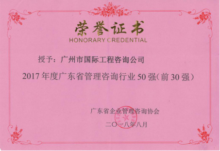 公司獲2017年(nián)度廣東省管理咨詢行業(yè)50強和2018年(nián)廣東省中小(xiǎo)企業(yè)優秀服務機(jī)構100佳獎項