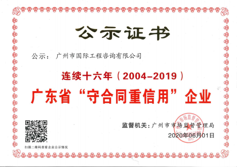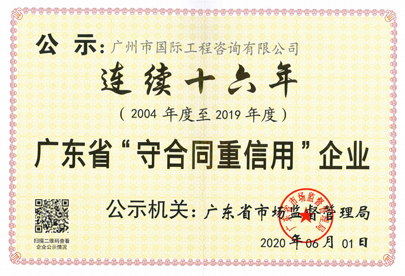 我司連續16年(nián)獲得“廣東省守合同重信用企業(yè)”稱号