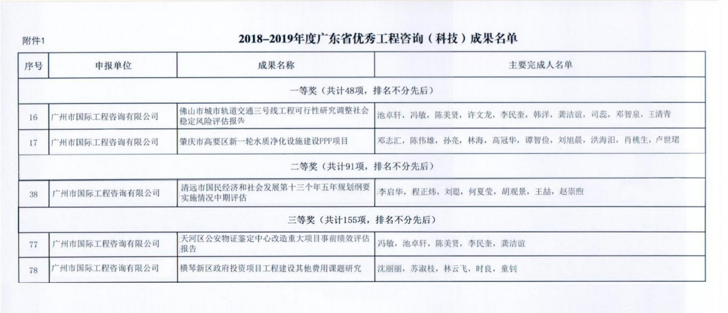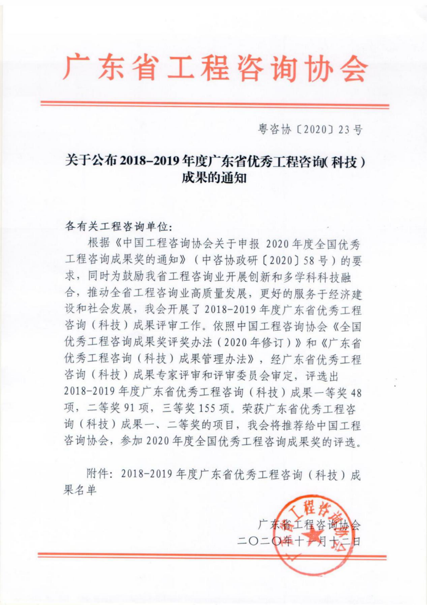 我司多(duō)個(gè)項目榮獲2018-2019年(nián)度廣東省優秀工(gōng)程咨詢(科技(jì))成果獎